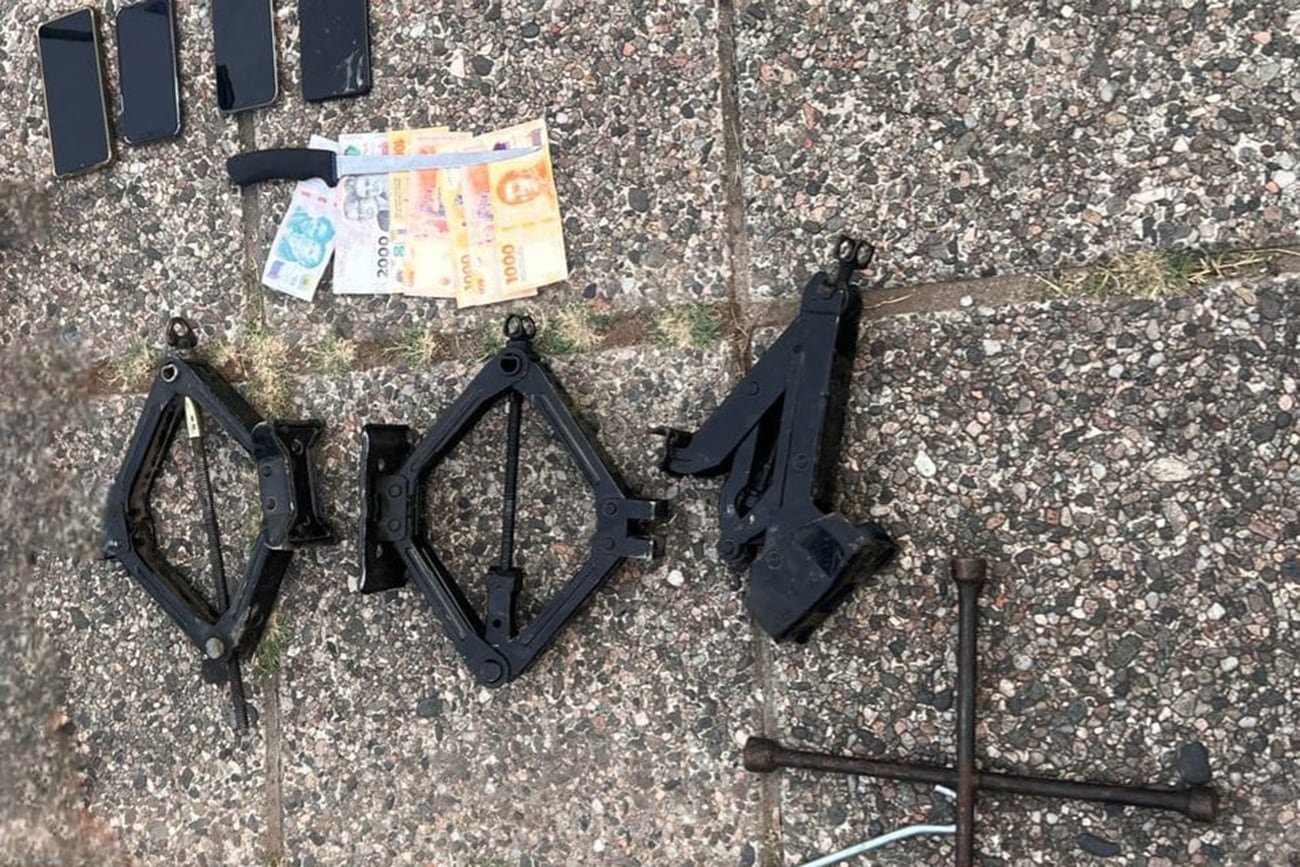 En el lugar se procedió al secuestro de un arma blanca, teléfonos celulares, tres gatos hidráulicos, una llave cruz, una manija de criquet y una suma de dinero que habrían sustraído al damnificado.