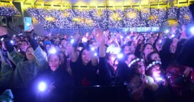 El cierre de la noche fue con todos juntos sobre el escenario interpretando Johnny B. Goode, el clásico de Chuck Berry.