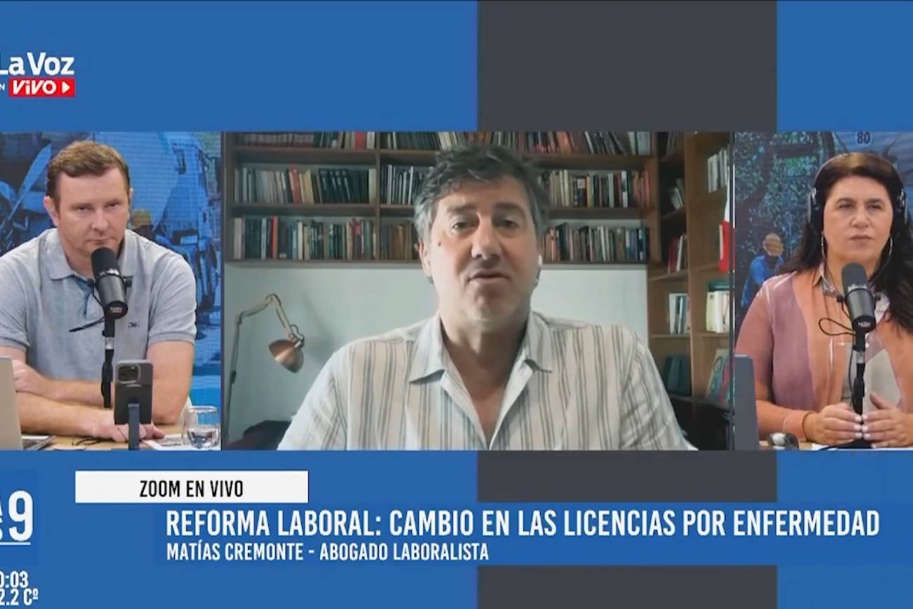 El abogado laboralista Matías Cremonte analizó en La Voz En Vivo los alcances de la aprobación de la reforma laboral en el senado. Con una visión crítica, el especialista aseguró que los fundamentos del Poder Ejecutivo —basados en la creación de empleo y el crecimiento económico— no se cumplirán a través de estas modificaciones normativas, ya que la generación de puestos de trabajo depende de la política económica y no de las leyes laborales.Cremonte, sobre el recorte en las licencias por enfermedadUno de los puntos que mayor “ruido” generó en el debate público es la modificación en el pago de las licencias por enfermedades o accidentes inculpables (aquellos ajenos al trabajo). Según Cremonte, la nueva regulación abre una “caja de Pandora” de discrecionalidad para el empleador.El abogado explicó que la ley pretende que se pague solo el 75% del salario por cualquier enfermedad y apenas el 50% si la lesión tiene origen en una “actividad riesgosa” asumida por el trabajador. “El empleador caracterizará si la actividad es riesgosa o no para descontar el salario, y es muy difícil que un trabajador le inicie un juicio a su empleador durante la relación laboral por temor al despido”, advirtió.Una reforma “regresiva e inconstitucional”Para Cremonte, la normativa transita un camino similar al de la ley de Riesgos del Trabajo (ART). El especialista destacó que el derecho internacional y los tratados con jerarquía constitucional en Argentina prohíben reglamentar derechos sociales de modo regresivo.“Una vez que un derecho ya es reconocido, no se puede ir para atrás y reconocerlo de una manera más deficitaria”, sentenció el letrado. Además, acotó que el empleador ya cuenta actualmente con herramientas legales para controlar abusos o certificados médicos falsos sin necesidad de esta ley.El Fondo de Asistencia Laboral: ¿un subsidio de los trabajadores?Otro de los ejes centrales de la crítica fue la creación del Fondo de Asistencia Laboral (FAL) para reemplazar las indemnizaciones por despido. Cremonte calificó este mecanismo como “perverso”, argumentando que deja de ser un costo del empleador para convertirse en un fondo subsidiado indirectamente por los propios trabajadores.El abogado detalló que el aporte para constituir ese fondo saldría de una reducción de lo que hoy se destina a los fondos previsionales. “Termina subsidiado por los propios jubilados o los trabajadores de hoy el pago de las indemnizaciones por despido”, aseveró.Impacto en el derecho a huelga y la acción sindicalFinalmente, Cremonte alertó sobre las reformas en el derecho colectivo. Según su análisis, la nueva ley limita drásticamente el derecho a huelga y la realización de asambleas, fomenta los sindicatos de empresa en perjuicio de las organizaciones por rama de actividad y permite perforar el “piso” de derechos. A través de convenios por empresa, consideró, se podrían reducir escalas salariales o licencias que hoy están garantizadas a nivel nacional. La Voz
